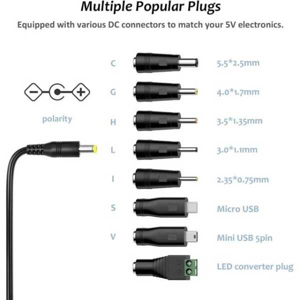 The 5V 1.5A UK Plug Adapter provides a stable 5V power output at 1.5A through a UK plug. It is suitable for powering various electronic devices that require 5V, offering reliability and efficiency.
