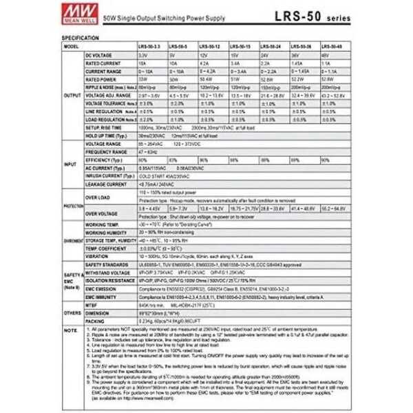 The High Quality Power Supply S-50-24 provides 24V with a 2A current, delivering a total power output of 50W. This power supply is suitable for applications requiring stable 24V power.