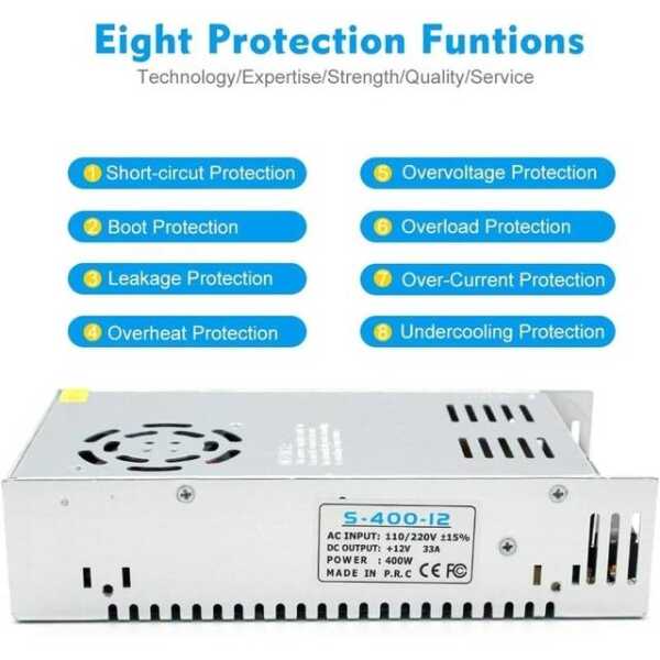 - Output: 12V, 33A, 400W