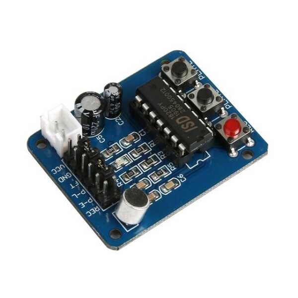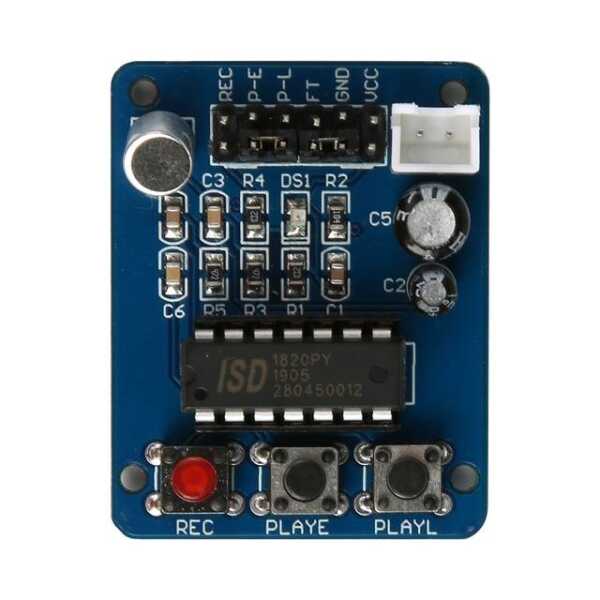 The ISD1820 Recording Module Voice Board With Microphone is a versatile module for recording and playing back voice clips up to 20 seconds long. Equipped with a high-sensitivity microphone, this module allows for direct audio input and playback, making it suitable for voice-based projects, IoT systems, and educational tools.