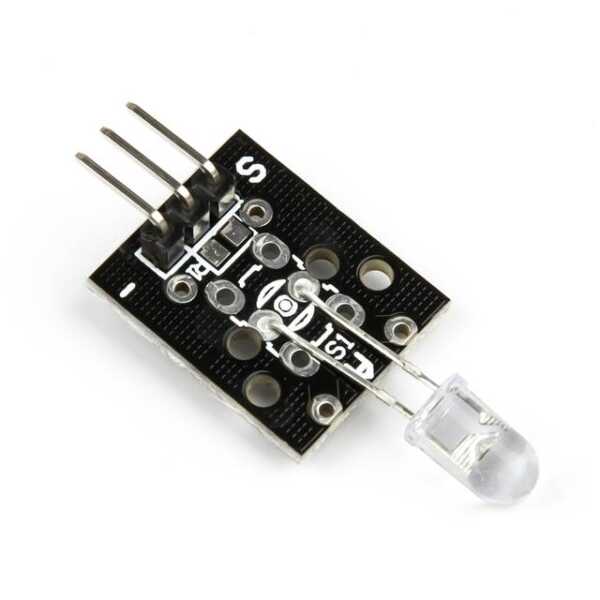 The KY-005 Infrared Transmit Sensor Module is an IR emitter module designed to transmit infrared signals. The module uses an IR LED to emit infrared light, which can be detected by infrared receivers. It is commonly used in applications such as remote control systems, object detection, and communication between devices in robotics and DIY projects. The module is easy to use with microcontrollers like Arduino for creating custom IR-based communication or sensing systems.