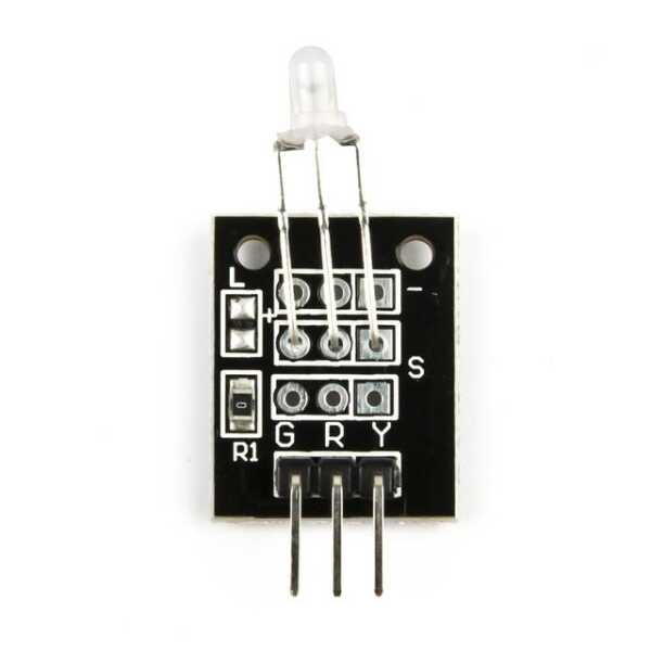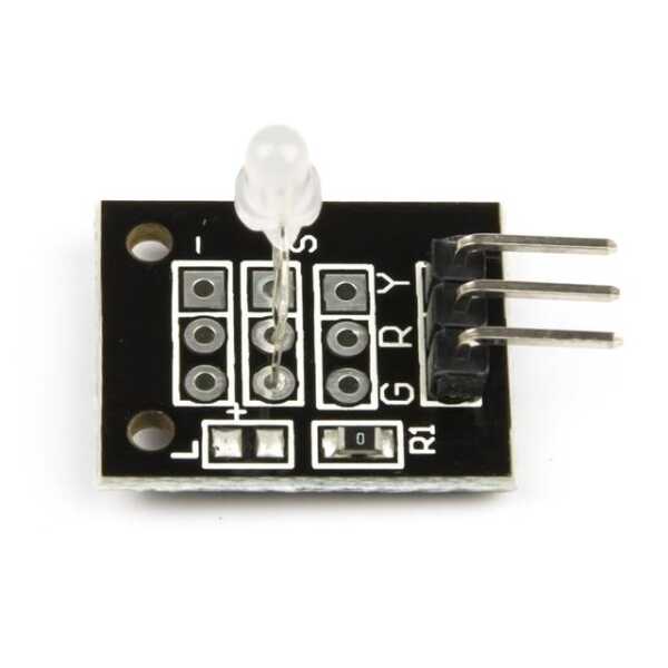 The KY-029 3mm DIP Two-Color LED Module is a smaller version of the two-color LED module, featuring a 3mm LED in a DIP package. The module provides two distinct colors—red and green—ideal for applications requiring simple visual indicators or status lights. Its compact size makes it suitable for smaller devices or systems where space is limited. The KY-029 is a versatile and low-cost solution for DIY electronics and prototyping projects.