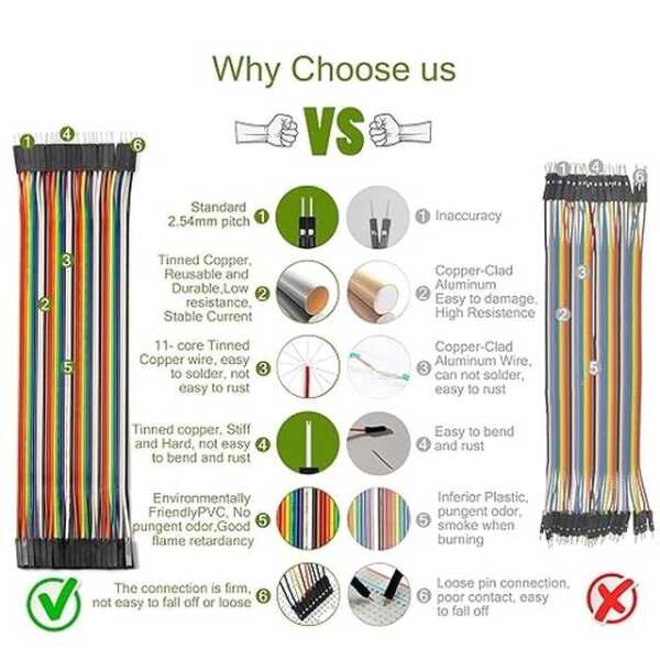 - Arduino Projects: Ideal for connecting Arduino boards to modules, sensors, or other components that require male to female connections.