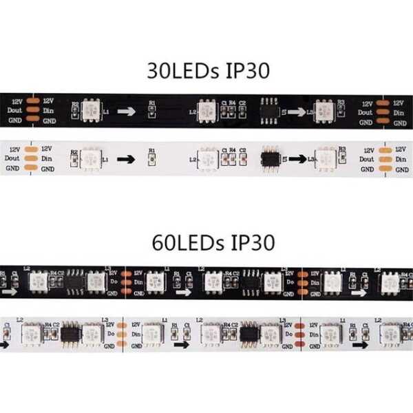 Non-Waterproof 12V WS2811 RGB5050 Black SMD LED Strip 144 LED/Meter Flexible 5M/Roll IP30 Applications