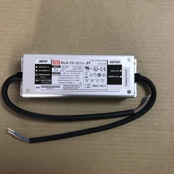 The Original Taiwan MEAN WELL ELG-75-12A-3Y Waterproof Power Supply delivers 12V output with a power rating of 75W. Its waterproof design ensures reliable operation in outdoor environments, making it suitable for various lighting and power systems.