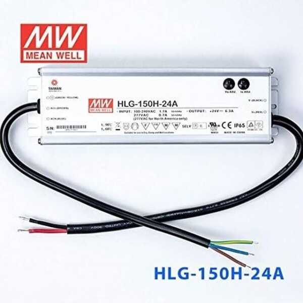 The Original Taiwan MEAN WELL HLG-150H-24A Waterproof Power Supply provides 24V output with a power rating of 150W. Its waterproof construction ensures reliable operation in outdoor environments, making it suitable for LED lighting and other outdoor power systems requiring stable 24V output.
