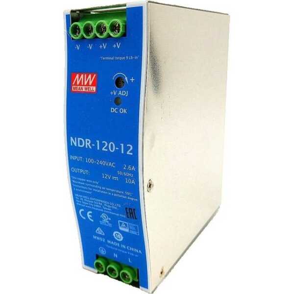 The Original Taiwan MEAN WELL NDR-75-12 Rail Power Supply is designed for DIN rail mounting and offers a reliable power solution with an output voltage of 12V. It is ideal for various industrial applications requiring stable power delivery.