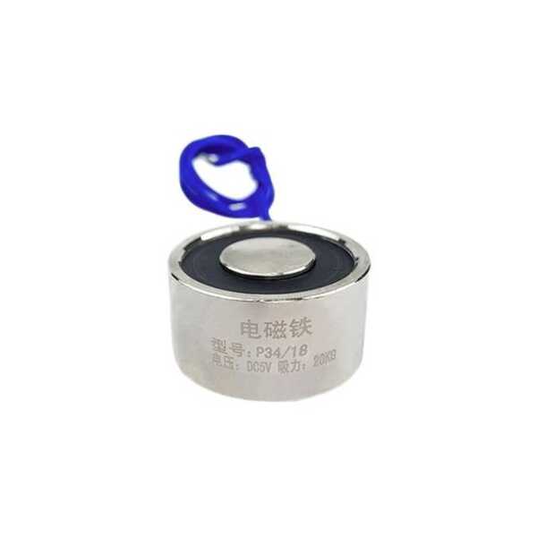 The P34/18 DC36V Electric Sucker Electromagnet provides a 20KG holding force powered by 36V DC, making it ideal for heavy-duty applications requiring high voltage and strong magnetic holding power.