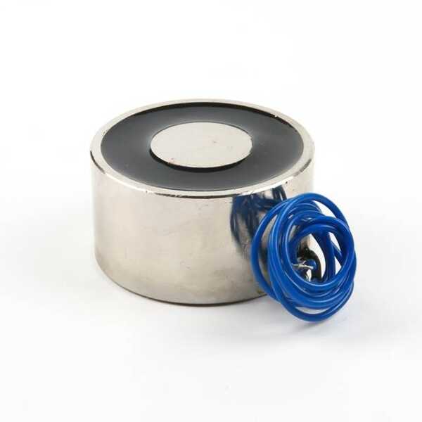 The P50/27 DC12V Electric Sucker Electromagnet 55KG is a powerful electromagnet designed for industrial and heavy-duty applications. Operating on 12V DC, it can lift objects weighing up to 55KG, making it suitable for large-scale material handling, industrial robotics, and automated systems. Its large lifting capacity allows it to handle heavy metal objects with ease, providing reliable and efficient magnetic lifting in demanding environments.