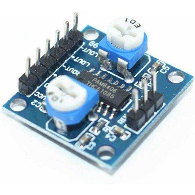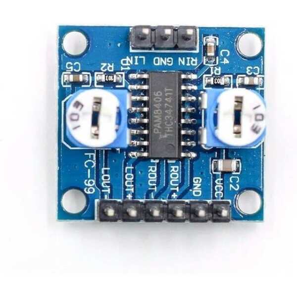 The PAM8406 Digital Amplifier Module is a high-performance audio amplifier capable of delivering 5W per channel in stereo. It features a volume potentiometer for precise sound control, making it ideal for various audio projects.