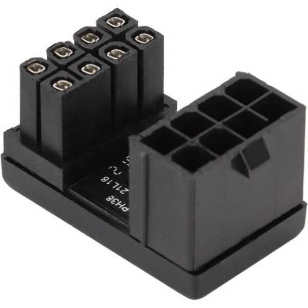 The PH38B ATX 8 Pin Adapter is an effective solution for converting an ATX 8 Pin Female connector to an 8 Pin Male connector at a 180-degree angle, suitable for space-constrained setups.