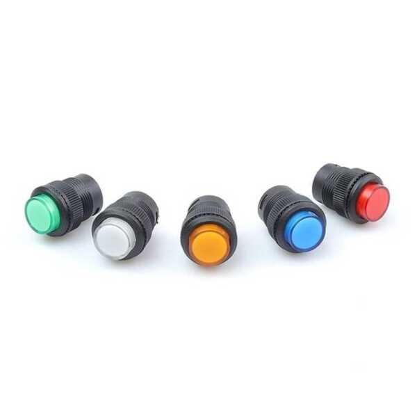 The Red R16-503A 16mm 2 PIN Momentary Self-Reset Mini Push Button Switch is designed for quick momentary control operations without a light. Its self-reset functionality ensures the button returns to its default state after each press, making it perfect for applications that require momentary on-off control.