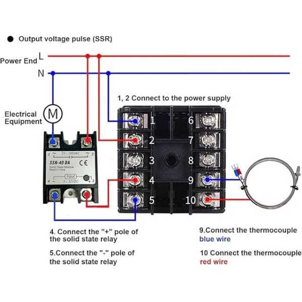 The solid-state relay (SSR-40DA) provides fast and efficient switching without the need for mechanical parts, ensuring a long lifespan and low maintenance. The K thermocouple sensor provides high accuracy for temperature sensing in a wide range of applications, from industrial to residential. The SSR output ensures that the system can easily control heating or cooling elements such as heating pads, fans, or compressors, maintaining stable temperatures in controlled environments.