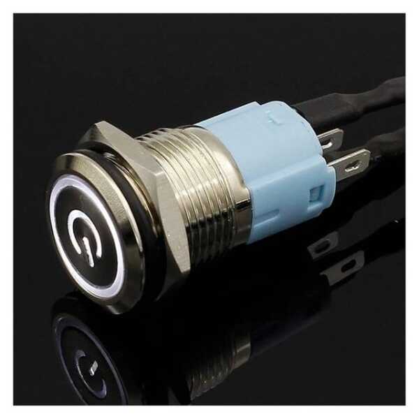 The Short Flat Head 16mm 220V Waterproof Momentary Self-Reset Metal Push Button Switch with blue LED light is a durable and sleek solution for temporary control in various environments. Its waterproof construction ensures reliable operation, while the blue LED offers clear visibility in low-light conditions.