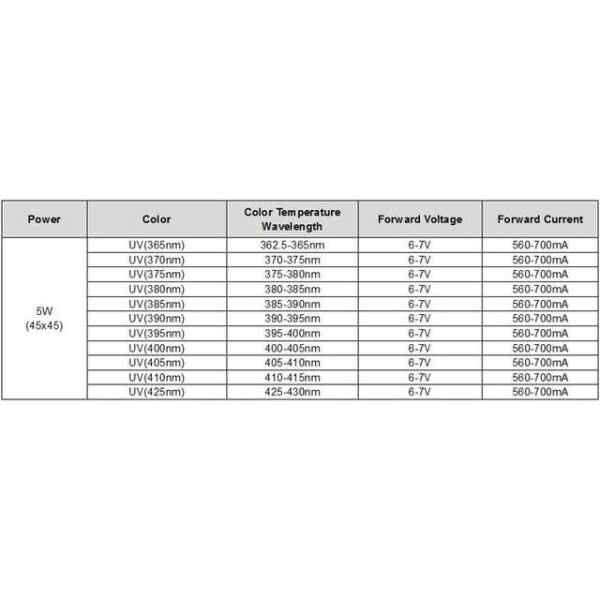 SMD 5W High Power LED Bulb 365-370nm Purple SMD 5W High Power LED Bulb 365-370nm Purple Specifications