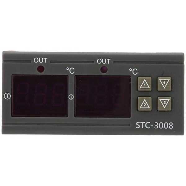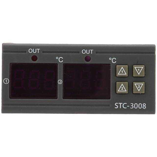 The STC-3008 AC110-220V Dual Display Dual Temperature Adjustable Temperature Controller is a highly reliable and versatile device for monitoring and regulating temperatures in two independent zones. This controller is powered by a wide voltage range of 110-220V AC, making it suitable for global use. Featuring dual digital displays, it provides real-time monitoring and allows for customizable temperature settings for each zone. Equipped with durable sensors and a 1M cable, the STC-3008 is ideal for a wide range of applications, including aquariums, incubators, industrial setups, and more.