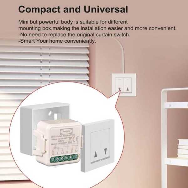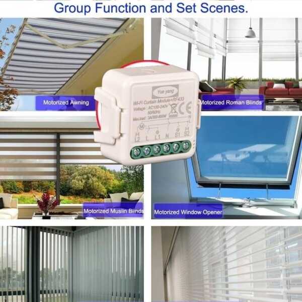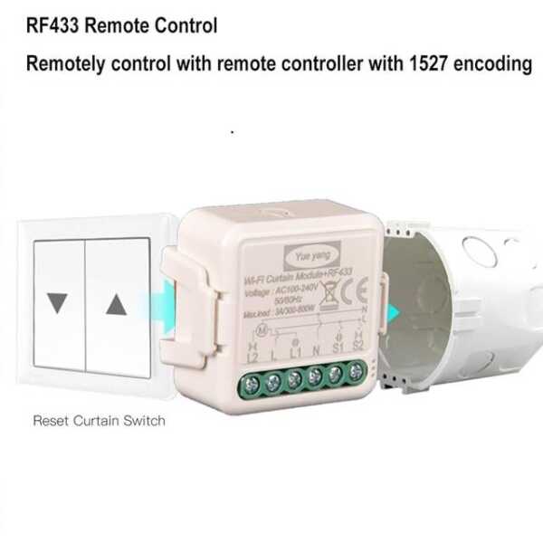 Tuya Wifi Curtain Switch Module (90-250V) RF 433Mhz For Alexa Original Packing Two Types Of Printing Are Distributed Randomly Size: 59x53x28cm Tuya Wifi Curtain Switch Module Applications
