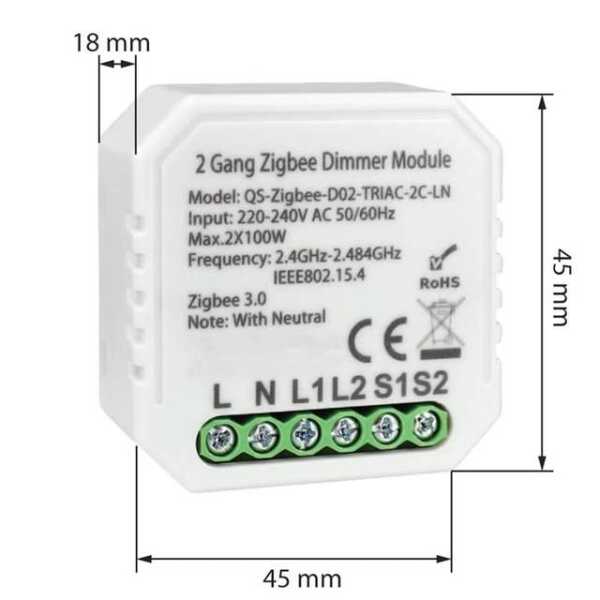 Tuya Zigbee 3.0 Dimmer Module 2 Gang QS-Zigbee-S04-2C-LN Zero Fire Original Packing Tuya Zigbee 3.0 Dimmer Module 2 Gang QS-Zigbee-S04-2C-LN Applications