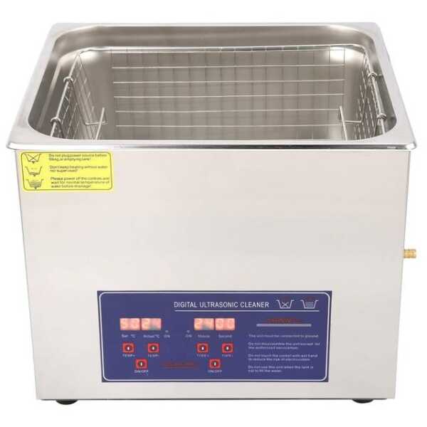 The Stainless Steel Ultrasonic Cleaning Machine PS-60A is a high-capacity cleaning system designed for professional and industrial applications. Featuring a 15L stainless steel tank, 40KHz ultrasonic frequency, and 360W power, it effectively removes dirt, grease, and contaminants from delicate and intricate items. Operating at 110V with a US plug, this ultrasonic cleaner ensures deep and precise cleaning for various industries, including jewelry, medical, automotive, and electronics.