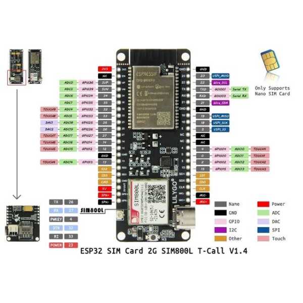 Unsoldered TTGO T-Call V1.4 ESP32 Wireless Module SIM Antenna SIM Card SIM800L Module CH9102F Chip Applications