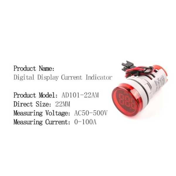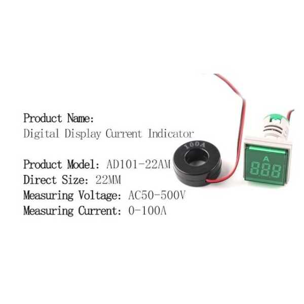 White 0-100A 22mm AD16-22FSA Square Cover LED Ammeter Indicator Light With Transformer Technical Specifications