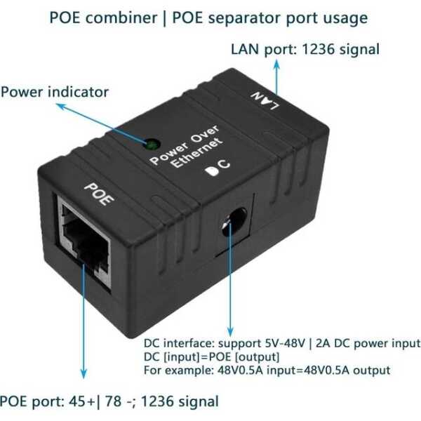 White 100M PoE Combiner 5-48V/2A - Type B Applications