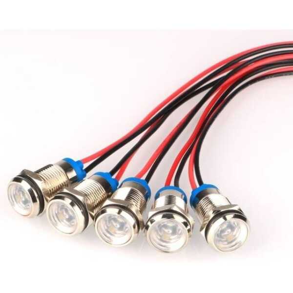 White 220V 10mm LED Metal Indicator Light With 15cm Cable Applications