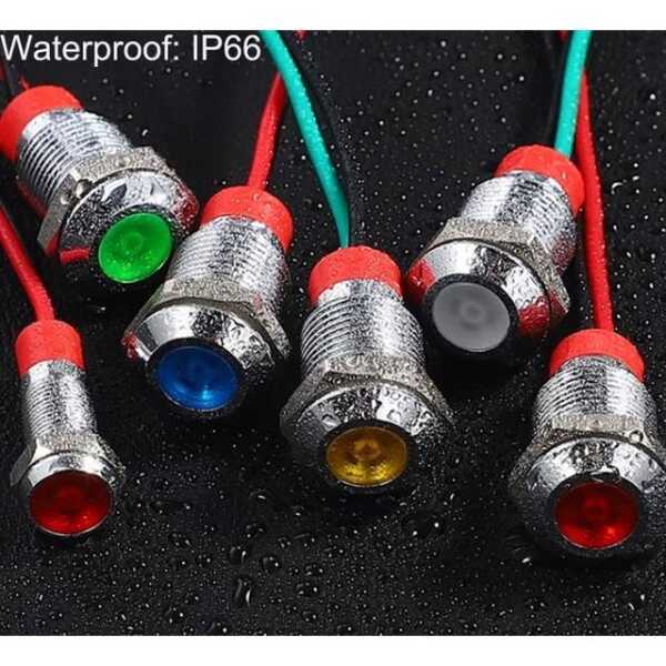 Yellow 10-24V 12mm LED Metal Indicator Light With 15cm Cable Applications