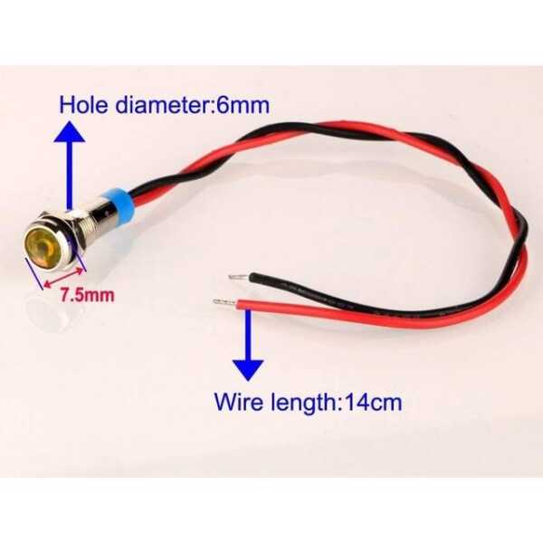 Yellow 10-24V 6mm LED Metal Indicator Light With 15cm Cable Technical Specifications