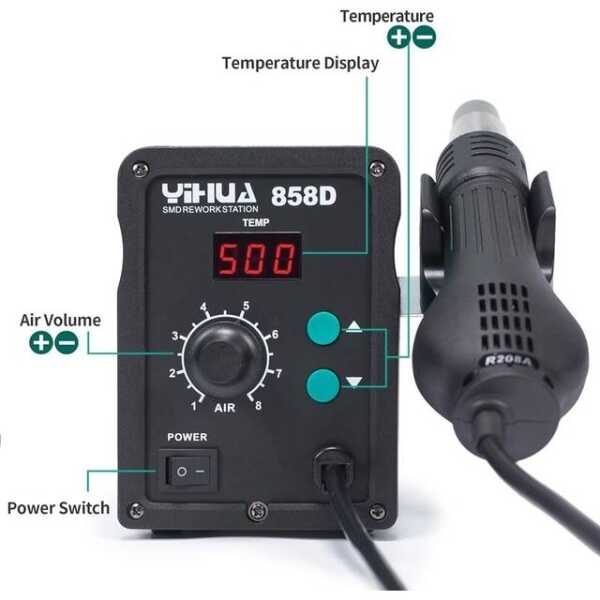 The YIHUA858D Adjustable Constant Temperature Hot Air Station is a reliable tool for precision soldering and desoldering tasks. With anti-static features and adjustable temperature settings, this station is perfect for users in Europe, ensuring safe and effective operation.