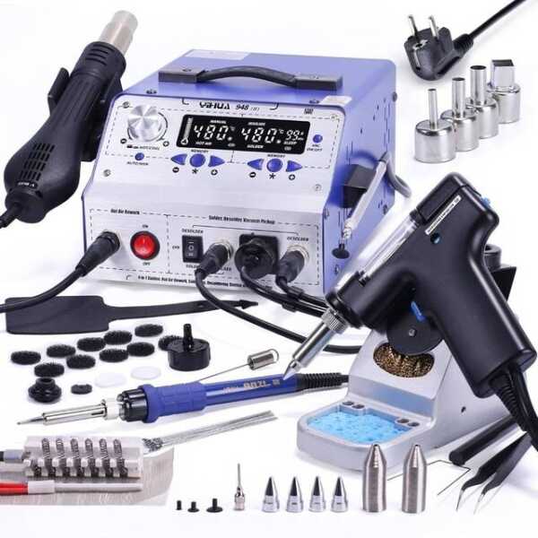 The YIHUA948 I Upgrade Digital Electric Soldering Device operates at 220V and features enhanced digital controls for precise temperature management. This model is designed for users in Europe, making it suitable for various soldering tasks.