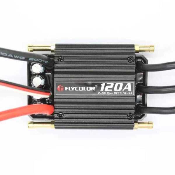 Flycolor Waterproof 120A 2-6S Brushless ESC 5.5V/5A BEC, yüksek performanslı brushless motor kontrolü için tasarlanmış bir ESC (Electronic Speed Controller) modülüdür. Bu ürün, waterproof özelliği sayesinde nemli ve suya maruz kalabilecek ortamlarda güvenle kullanılabilir. 2-6S LiPo bataryalarla uyumlu olan 120A kapasitesindeki bu ESC, özellikle RC araçlar, dronlar ve robotik projelerde mükemmel bir hız ve kontrol sağlar. Kompakt yapısı ve sağlam performansıyla, hem amatör hem de profesyonel kullanıcılar için idealdir.