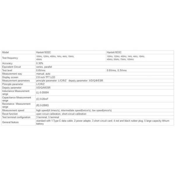 Hantek 1833C 100Hz - 100kHz El Tipi Dijital LCR Metre AB Fişi Pilli Özellikleri