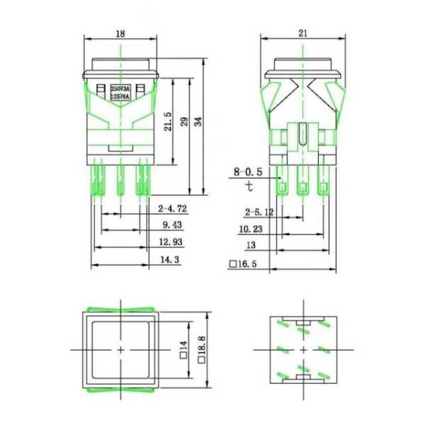 KD2-21 19mm Işıklı Yaylı Push Buton - Yeşil Teknik Özellikleri