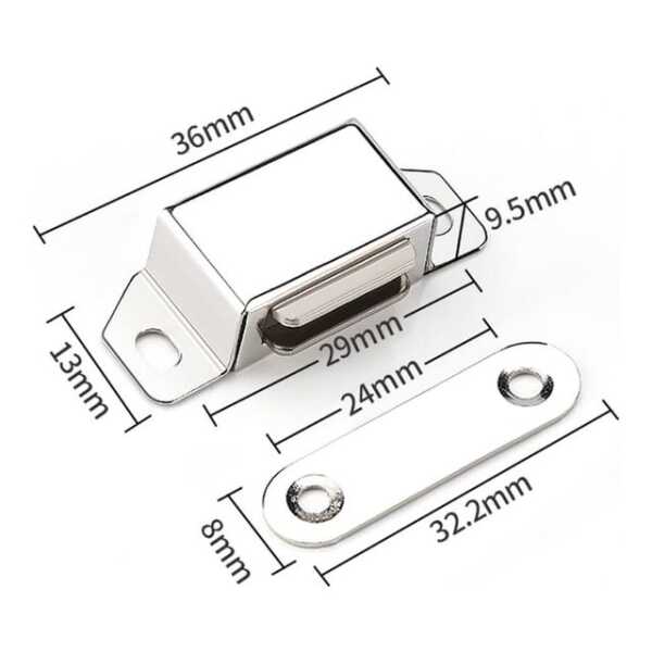 Mıknatıslı Metal Mobilya Kapak Kilidi 22x13x10mm Teknik Özellikleri