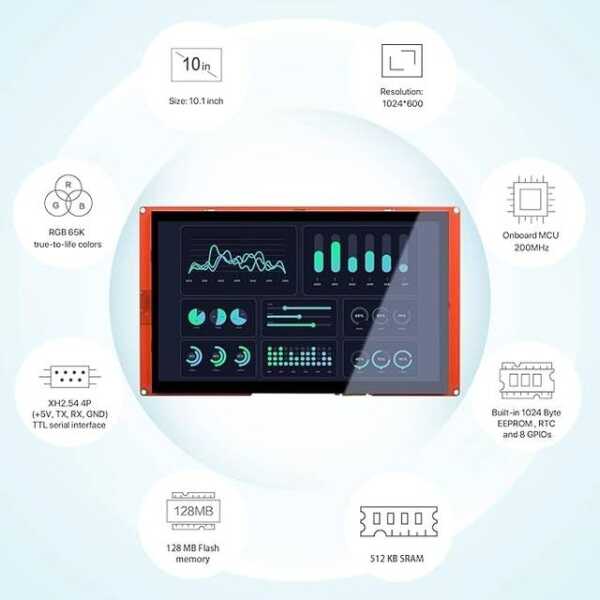 Nextion NX1060P101-011C-I 10,1 İnç 65K Kapasitif Dokunmatik Ekran Uygulamaları