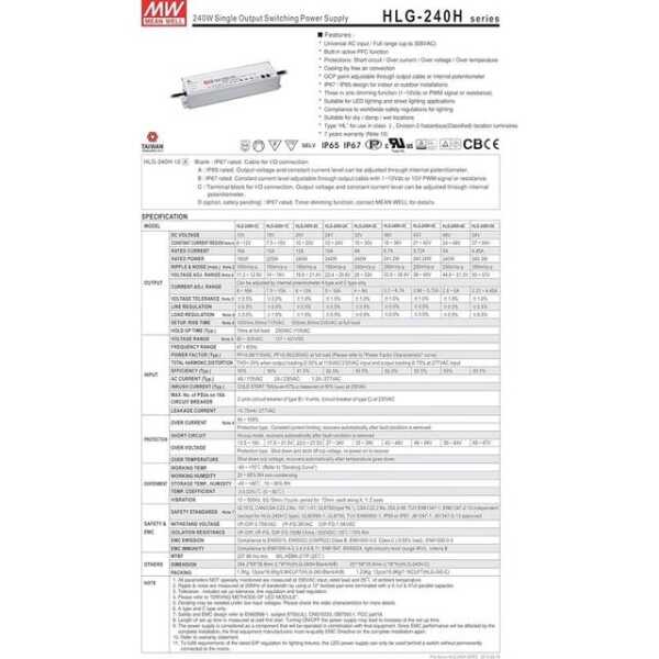 Orijinal Tayvan MEAN WELL HLG-240H -24B Su Geçirmez Güç Kaynağı Orijinal Tayvan MEAN WELL HLG-240H-24B Güç Kaynağı Özellikleri