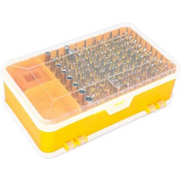 Sarı 115'i 1 Arada Çok Amaçlı Tornavida Set, çok çeşitli görevleri yerine getirmek üzere tasarlanmış kapsamlı ve çok yönlü bir araç setidir. 115 farklı tornavida ucuyla, çeşitli vidalar ve bağlantı elemanları için geniş bir alet yelpazesi sunarak her işe hazırlıklı olmanızı sağlar. Bu set profesyoneller, Kendin Yap meraklıları ve ev onarımları için mükemmeldir ve kolay saklama ve taşınabilirlik için dayanıklı bir plastik kutu içinde düzenli bir şekilde organize edilmiş olarak gelir.