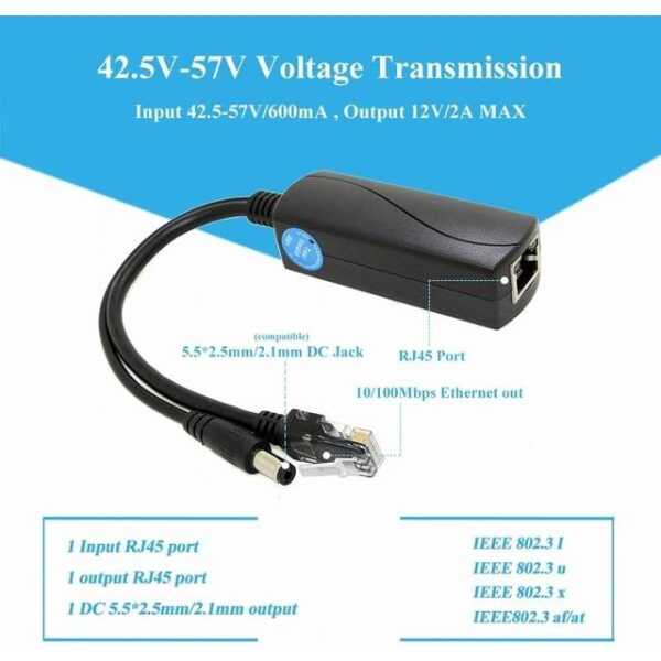 SDAPO PS5712AT DC5.5x2.1mm 100M PoE Ayırıcı 48V - 12V 2A - Yüksek Performanslı Sürüm Uygulamaları