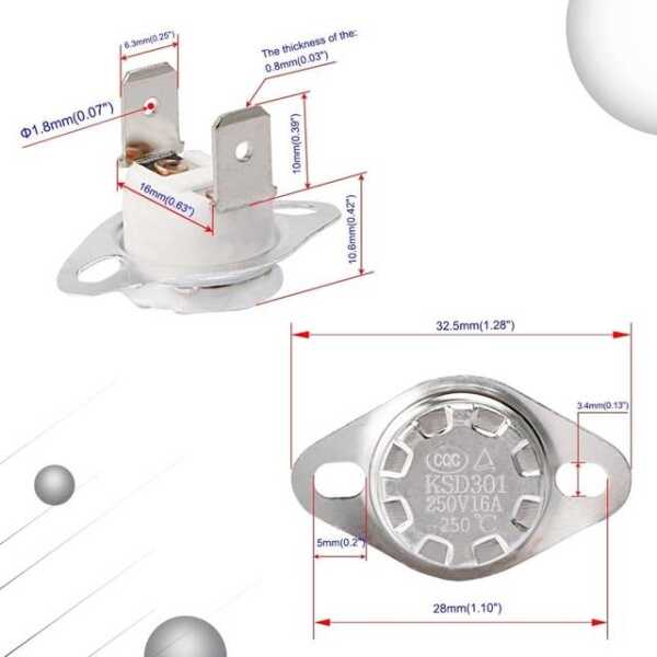 Seramik KSD301 60 Derece Normalde Kapalı NC Sıcaklığı Kontrollü Anahtar Termostat 250V 16A Sıcaklık Kontrol Seramik KSD301 60 Derece Normalde Kapalı NC Sıcaklık Kontrollü Anahtar Termostat Özellikleri