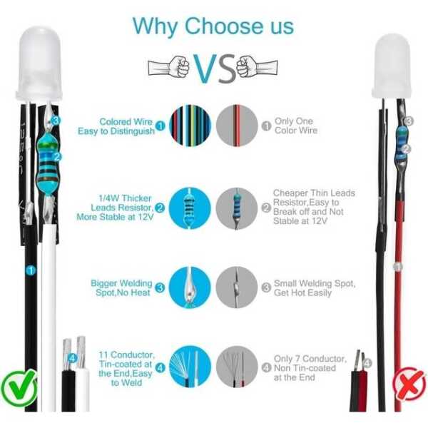 110V 5mm Beyaz LED 20cm Kablolu Gösterge Işığı Uygulamaları