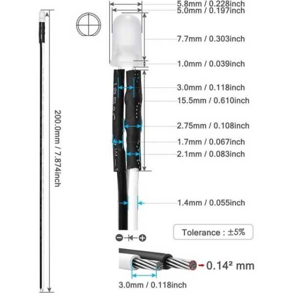 20cm Kablolu 110V 5mm Beyaz LED Gösterge Işığı, yüksek verimlilik sunar ve çeşitli aydınlatma uygulamaları için idealdir. Dayanıklılık ve yüksek performans için tasarlanan bu LED ampul, uzun ömür ve enerji tasarrufu sağlar.