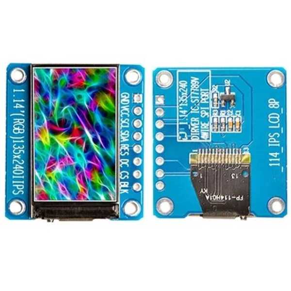 1,14 inç 135x240 RGB TFT IPS LCD Modülü canlı renklere ve geniş görüntüleme açılarına sahiptir. ST7789 çipinden güç alan bu cihaz, kolay entegrasyon için 8 pinli arayüzle yüksek kaliteli görseller sunar.