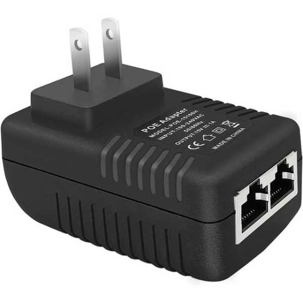ABD fişli bu 15V 1A 100M PoE Enjektörü şık bir gümüş ağ ile PoE cihazlarına verimli güç ve veri iletimi sağlar kesintisiz bağlantı için bağlantı noktası.