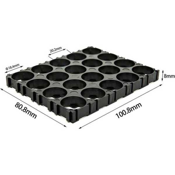 4x5 18650 Pil Tutucu, 18,5 mm delik çapına sahip 20 adede kadar 18650 pili tutar. Çeşitli elektronik ve güç uygulamalarında verimli pil yönetimi ve güvenli yerleştirme için tasarlanmıştır.