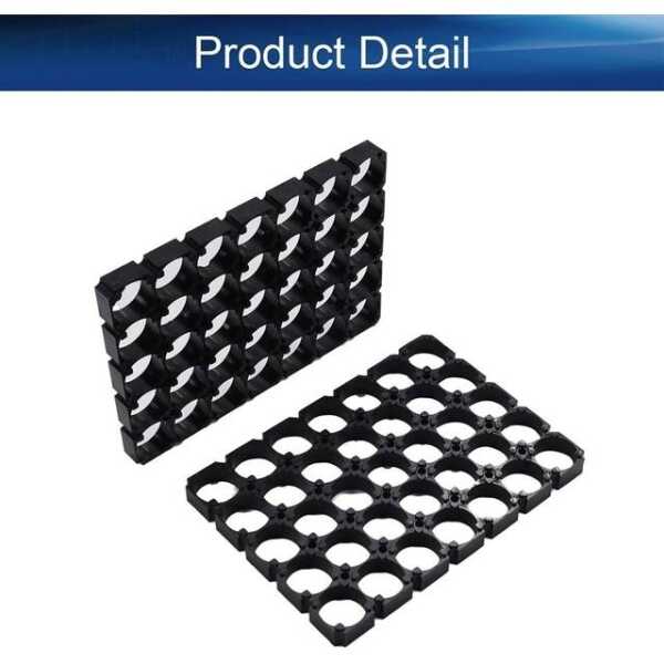 5x7 18650 Pil Tutucu, 18,5 mm delik çapına sahip 35 adede kadar 18650 pili barındıracak şekilde tasarlanmıştır. Bu tutucu, büyük ölçekli güç sistemleri ve yüksek kapasiteli pil paketleri için idealdir.