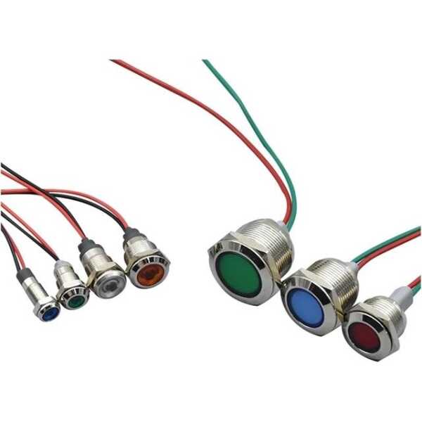 22-28V 5mm Sarı LED Metal Gösterge Işığı 20cm Kablolu Uygulamaları