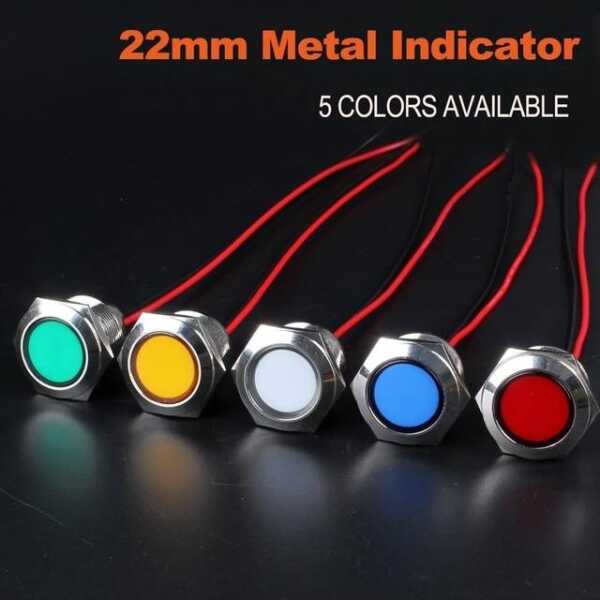 22-28V 8mm Sarı LED Gösterge Işığı, 20cm Kablolu Uygulamaları