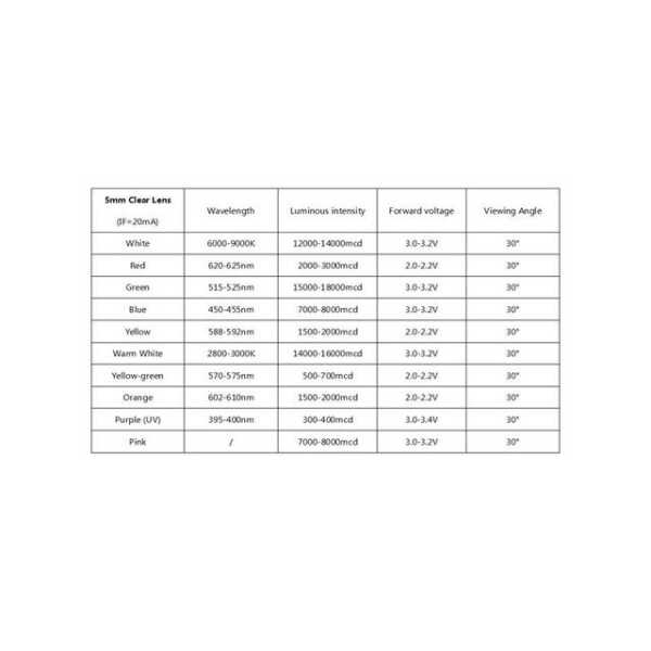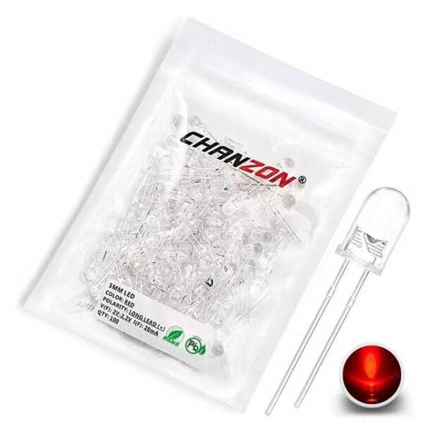 - Boyut: 28 mm bacak uzunluğuna sahip 5 mm LED