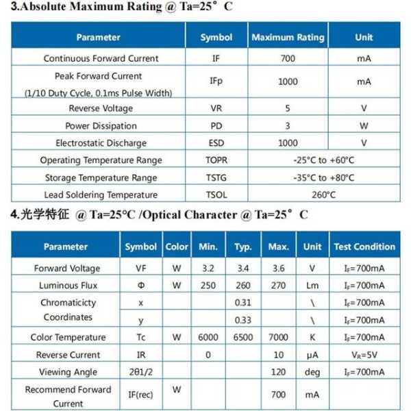 - Işın Açısı: 120° geniş açılı ışık yayılımı